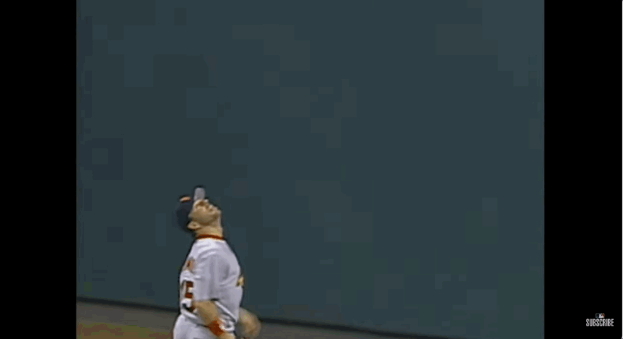 Clarke is absolutely joining that club. The question is whether he’s about to own it. I want to figure out which of the previous marvels in the Spiderman robbery category has burrowed into the most brains. These are, to be clear, only robberies where the outfielder uses the wall to launch himself. I’ve got a list of four above-the-fence robberies I’d count as the biggest challengers to Clarke — or perhaps the highlights to which he’s now the biggest challenger.