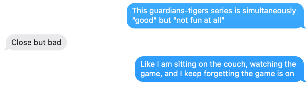 (When Ramírez led off the bottom of the ninth by reaching third on an error I was briefly convinced the Guardians were going to dink and bloop their way into the World Series.) –HK