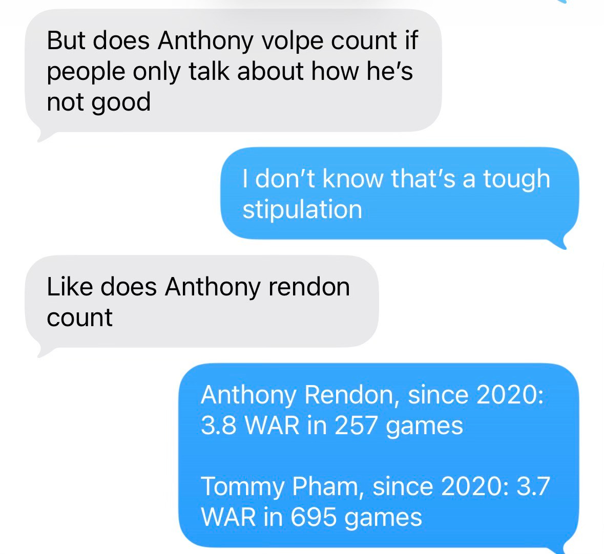 Substance of those aside for a moment, Pham is portrayed in the story as a thoughtful, plugged-in participant in the business of the game, and that I can whole-heartedly agree with. He has indeed developed his own personal strategic lane. But it’s not about stats or clubhouse vibes or a winning mentality. It’s about hustle. The hustle to remain relevant — to be quoted, to be mentioned, to be written about far more than on-field value would dictate at this stage of his career. If WAR stood for Words Above Replacement, well, PhamGraphs would be the authority.